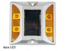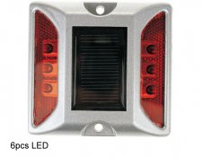 Reflector material AcrylicFrame material AluminumSize 102*113*22cmLighting Mode FlashingLED quantity 6pcs or 4pcs Diameter 5mm High Brightness(Dual side)LED Color range:Red, Yellow, Blue, WhiteReflective Lens color range:Power supply 1.2v 600mah NI-MH BatteryWorking time Over 60 hours after full chargedFeatures:Yellow,red, white,green1. The embedded reflectors are made of acrylic mixed material; hardness is very high. By using the good reflector mold, meet the Euro Reflective Road Stud Standard. They aren't hurt when the wheels driven on them, and the super high identity brings you the good reflective effect at far distance.2. The special mixed glue can protect the coating of the reflector's back from being eroded under the high temperature.3. The aluminum frame with smooth edges is sandblasted. The solar road stud is no harm for the tires, and could extend the wheel’s life span, when the car run over many times.4. Waterproof: Achieve IP68 waterproof level and own long life span.