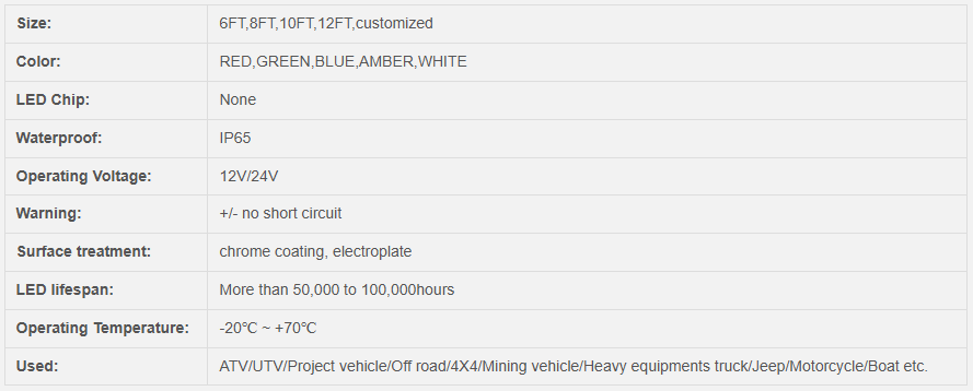 MU-32004-12~24V 6/8/10/12FT STEADY/FLASHING TOP LED LIGHT MINING SAFETY LED WHIPS